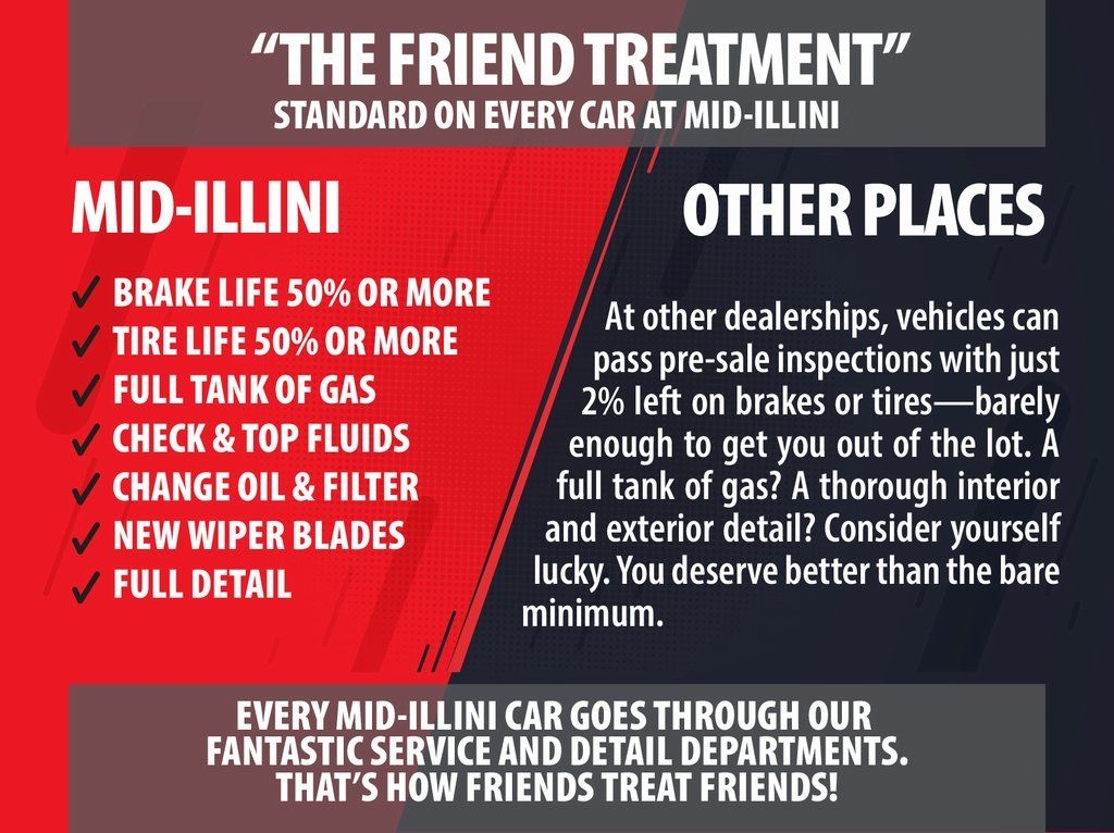 At Mid-Illini Auto Group, we believe your vehicle search and eventual purchase should be Simple, Straight Forward, and Hassle Free! We want you to own your vehicle, not your vehicle to own you. We eliminate the unnecessary (and annoying) back and forth negotiations many dealerships live by. By offering low up front pricing that is value driven and by keeping our overhead low, we can price our vehicles in a way that just makes sense.